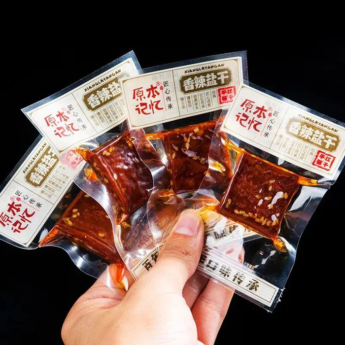 辣卤盐干口味更为丰富,入口微微辣,随后满口的卤汁味道瞬间在口腔散开,卤汁的香味与辣味的融合让香辣盐干的口味适中,让人一块接着一块,好吃的停不下来。