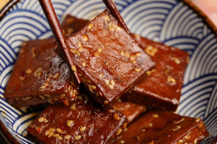 豆干口味的本身在于豆腐,而增加其风味的秘诀就是卤制。