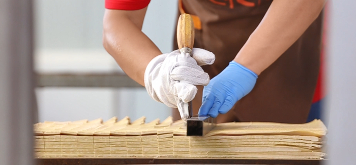 为了传承平江豆干老手艺的味道,原本记忆豆干厂的老师傅,都是有着十多年豆干制作经验,对于豆腐的制作,更是驾轻就熟。