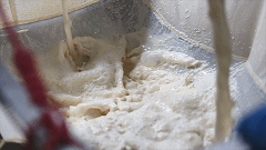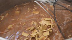 点卤是制作豆腐是一个很关键的工艺,老师傅们可以恰到好处地调配好卤汁和豆干的成份,制作出的成品豆腐网眼结构大,交织牢固,持水性好,柔软细嫩不失韧性,产品得率高。