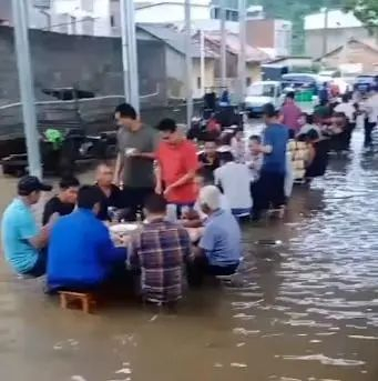 广西一居民家摆酒,水淹屁股宾客仍淡定吃席