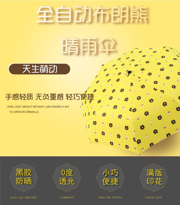 晴雨两用全自动卡通可爱小熊伞