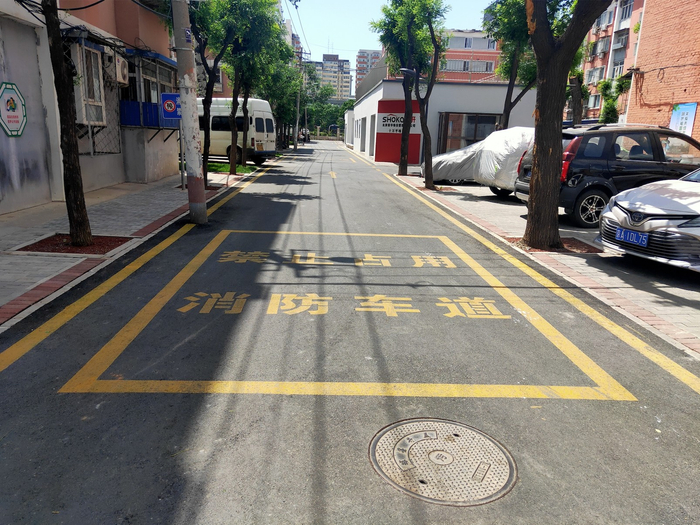 石景山区消防救援支队执法一大队助理工程师何建财介绍,在居民的配合下,小区很快完成了出入口、路面及两侧划设醒目标志、标线,引导车辆规范停放,小区违停占用消防车通道现象明显改善,但也仍然无法根治。