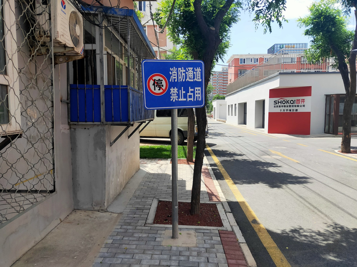 在石景山区消防救援支队的指导下,街道、物业单位找出小区原始规划图,明确消防车通道路线,从停车乱象最严重地带入手,在路面施划“消防通道,禁止停车”的显著标识,在主要消防车通道两侧设置警示牌。