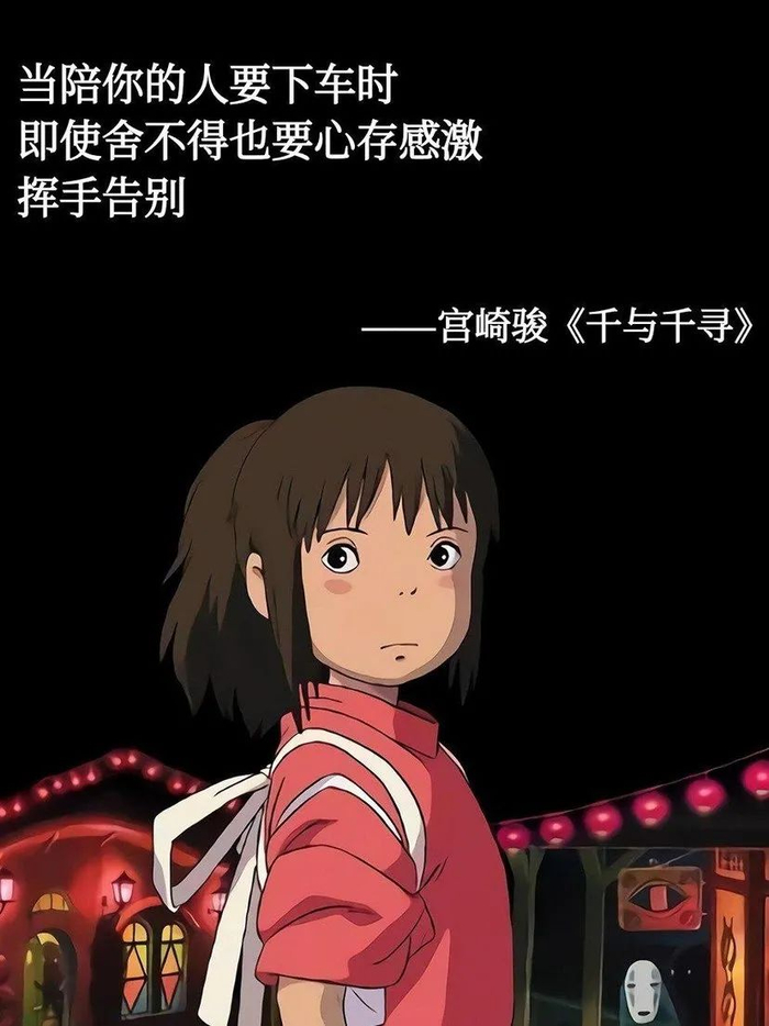 正如日本动漫大师宫崎骏的电影《千与千寻》中所说,“人生就是一列开往坟墓的列车,路途上会有很多站,很难有人可以自始至终陪着走完。当陪你的人要下车时,即使不舍也该心存感激,然后挥手道别。”