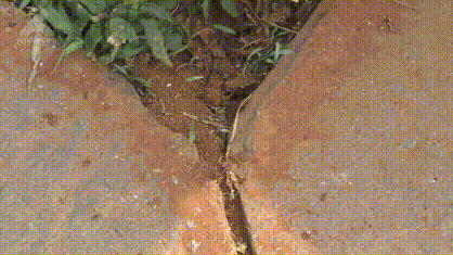 6月1日,小谭带着记者来到了当晚的事发现场,这里是小区的停车场,地面用方砖铺设而成,方砖的空隙间长着杂草。记者注意到,有几个缝隙内的土质看起来比较疏松,仔细观察,可以看到有蚂蚁在乱窜。