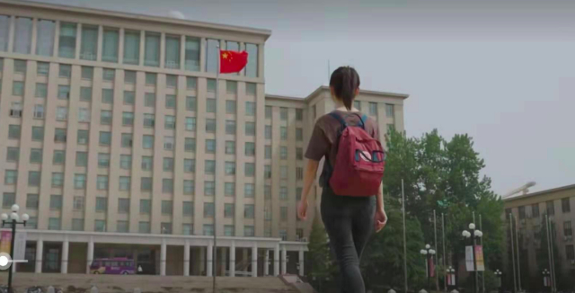 在一段1分多钟的视频里,她时而漫步于清华美术学院、艺术博物馆,时而在大礼堂前的草坪边安静地阅读,最后又步入计算机系的实验室……