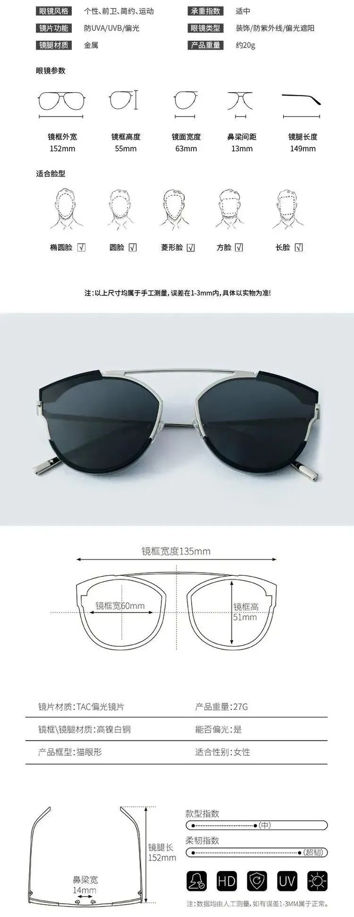 1、日本偏光技术,防紫外线,眩光,开车出行安全系数高,防晒又呵护眼睛