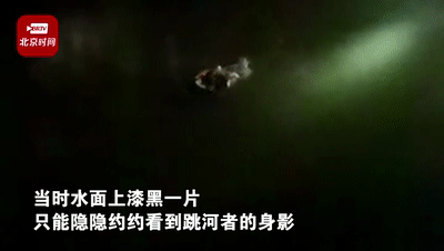 只能隐隐约约看到跳河者的身影