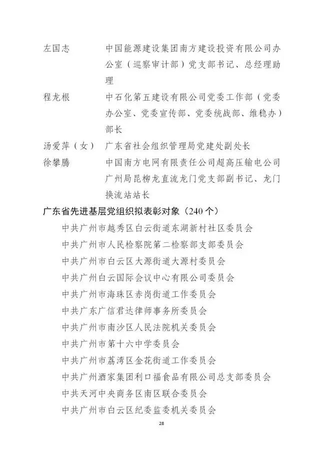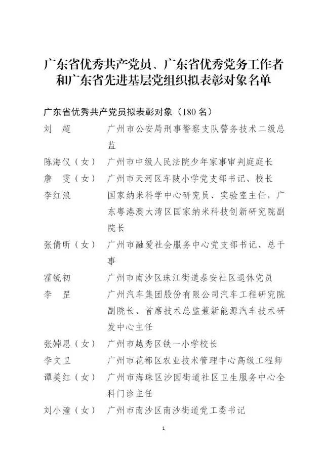 根据有关规定,经过逐级推荐、严格考察、综合比较、征求意见等程序,确定了180名广东省优秀共产党员、180名广东省优秀党务工作者、240个广东省先进基层党组织拟表彰对象。