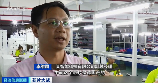 某智能科技有限公司副总经理李维群:有个芯片是德国产的,去年的价格是在3.5元一个,今年已经涨到16.5元,相比之前一个芯片已经涨到近5倍的价格。