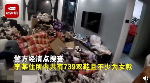 嫌疑男子李某的宝马车后座塞满鞋子。