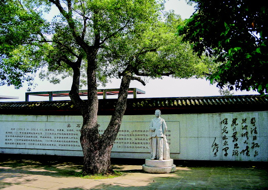 绿树掩映的吴石将军广场上,只见吴石雕像静静地伫立着,石壁上镌刻的“吴石生平”仿佛在无声地诉说。旁边的陈列板,把大多数人最感兴趣的内容做了强调:上面有吴石戎装照与电视剧《潜伏》剧照“对比图”。