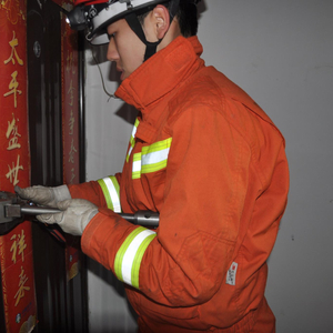 身穿消防服的黄禄通在救援中利用一技之长开锁