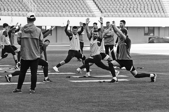 6月5日,青岛队在国信体育场集训备战联赛。IC供图