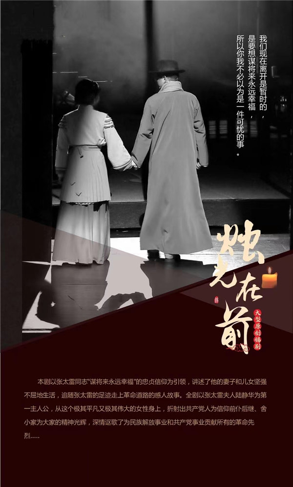 2021年5月20日,《烛光在前》在南京隆重上演,5·20,顾名思义而变成的一个情感表达的日子,正是一睹这部戏的恰切时日,借以对当下满屏浅薄的情感表达投以一丝不屑的笑,在寒冬中体验百年前那一晌温存……