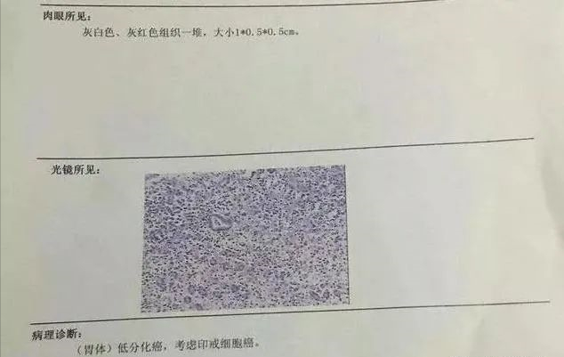 于是在2020年6月重新做了胃镜,并取了活检。病理报告为:低分化印戒细胞癌。