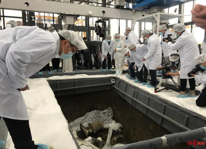 四川省文物考古研究院发布消息称,目前3、4号坑内象牙提取工作已基本完成,下一步将对象牙下文物进行提取,其中包括众多揭露出来的青铜器。6号坑正在进行坑壁和“木箱”的整体提取工作。而5号坑比较特殊,圆形金箔片散落众多,目前已完成西北区域除圆形金箔片之外的文物提取,基本确认到达坑底,专家会商后,决定将对其局部开展实验室考古。