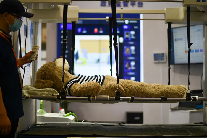 一只人偶“躺”在护理床上