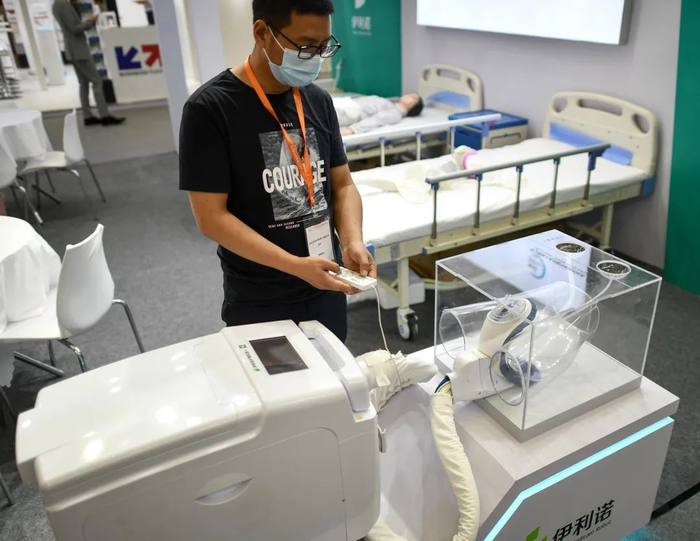 在苏州伊利诺护理机器人的展位上