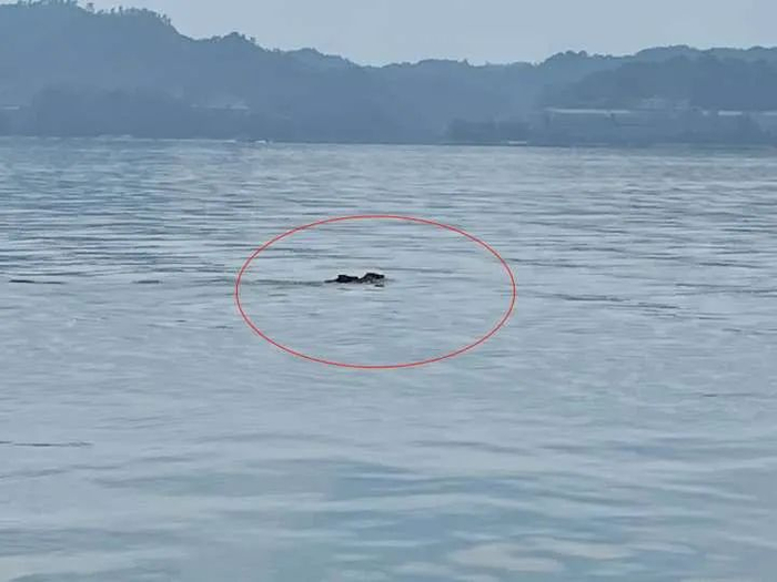 “第一次看见野猪游千岛湖!”