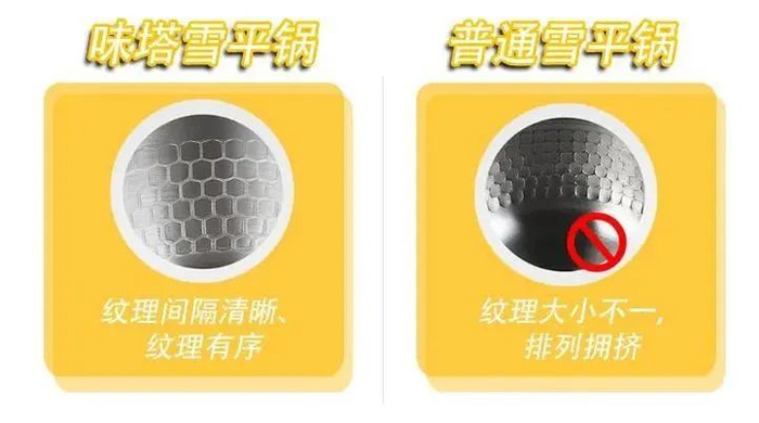 味塔日式雪平锅的雪花锤纹跟普通的锅比更加整齐,导热效果更好,受热也更加均匀。