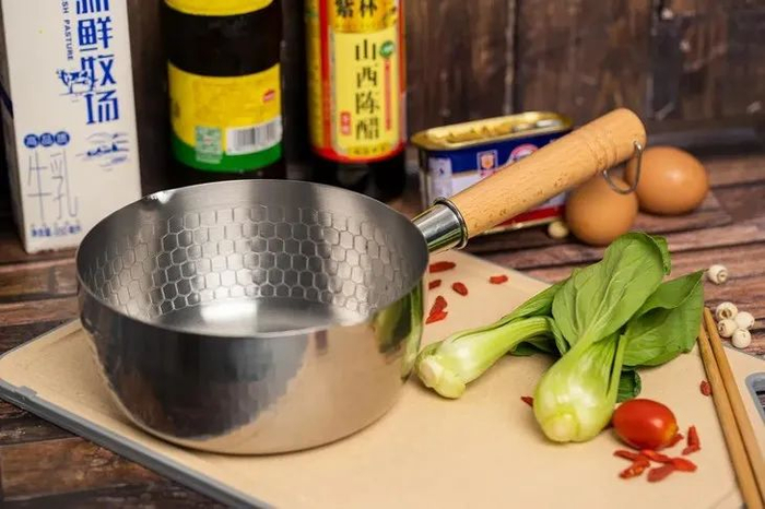 这种样式的雪平锅来自隔壁日本,在日本的家庭中很受欢迎,并且在电视里也时常看见使用雪平锅做料理的场景。