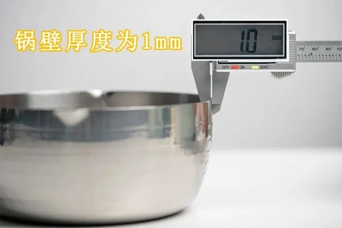 不锈钢材质还有导热快的特点,而且这口锅的厚度仅有1mm,传递热量更迅速。
