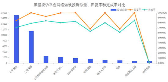 黑猫投诉网络游戏投诉数据对比:英雄联盟和光遇解决率较低