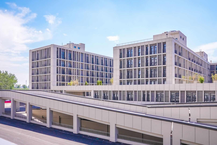 流通中心占地面积约305亩,建筑面积约61.6万平方米。其中,主功能区建筑面积48.3万平方米,共8栋楼,地下2层,地上4层、局部5层,主要用于批发、交易、展示和体验。商务配套区建筑面积13.3万平方米,共5栋楼,地下4层,地上6层、局部7层,主要为商户提供办公、工商、税务、金融等一系列的配套服务。