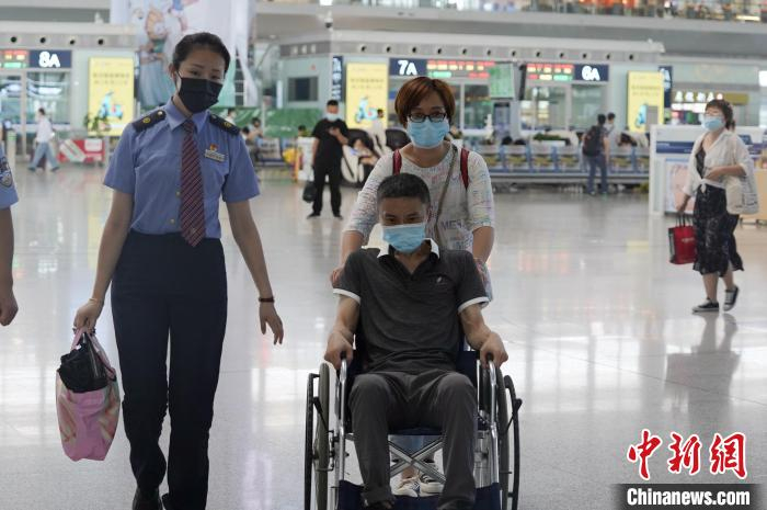图为西安火车站工作人员服务旅客。 赵杰 摄