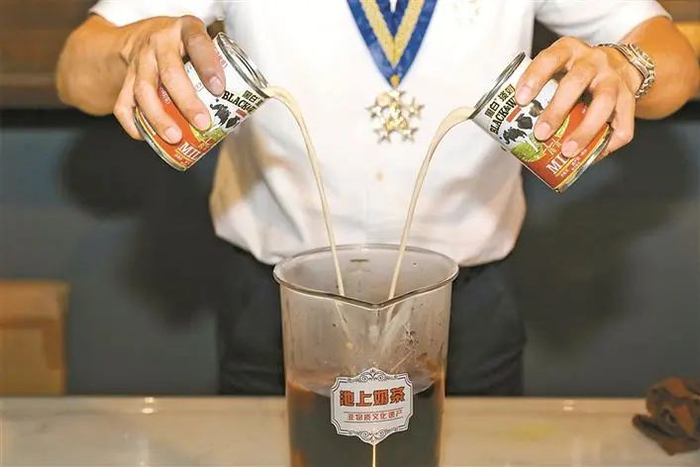 “一杯好的奶茶在制作过程中,手势、力道等独特技艺也至关重要。”余庆池介绍道,一杯奶茶需要经过煲茶、拉茶、撞奶等多个看似简单却严谨的步骤。