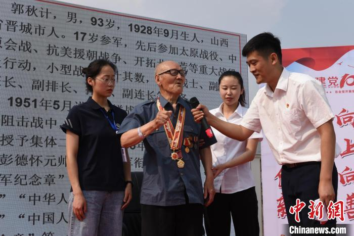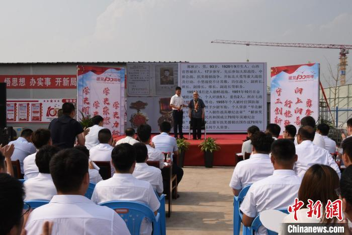 中新网晋城6月11日电 (记者 屈丽霞)“你们要好好建设国家,保护好她,这是很多人流血换来的。”10日下午,烈日当空。在山西晋城丹河岸边,93岁的抗美援朝老兵郭秋计坐在中铁七局丹河新城项目工地讲台上,一场别开生面的主题团日活动在老人的谆谆教导中展开。