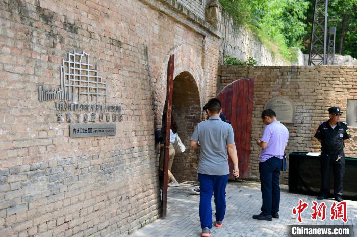 6月10日游客在陕西宝鸡长乐塬抗战工业遗址窑洞车间内参观。 田雨昊 摄