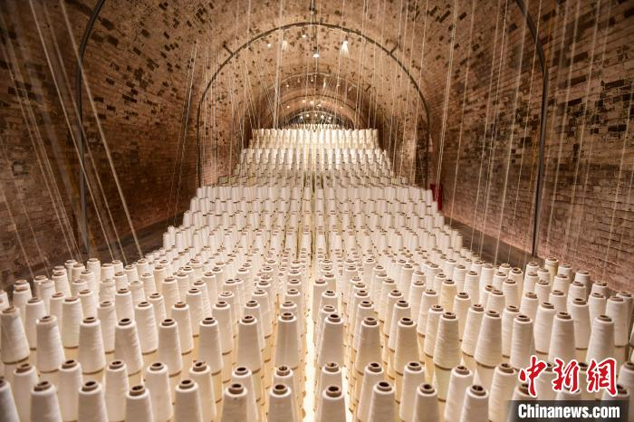 6月10日在陕西宝鸡拍摄的长乐塬抗战工业遗址窑洞车间展出的艺术装置。 田雨昊 摄