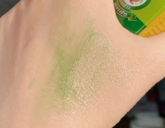 深绿色的膏体状,淡淡的薄荷香气,比较好推开,几秒就吸收了,两三个小时过后还能感觉到清凉。