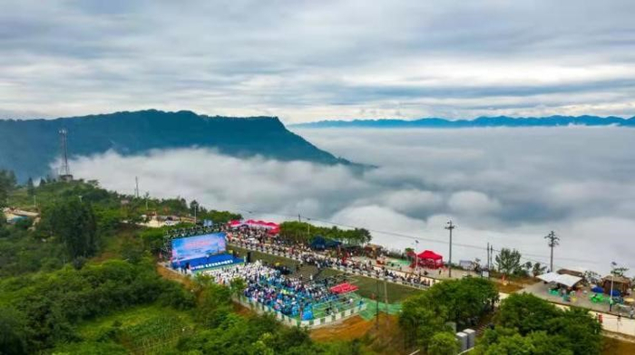 央广网重庆6月11日消息黄金之恋,缤纷大岭,浩瀚云海。11日,重庆忠县首届森林露营节暨第五届渝东南生态民族旅游文化节忠县分会场活动在忠县黄金镇大岭佛耳岩景区开幕。现场嘉宾和游客们近距离感受“三峡库心,大岭云海”的壮观风景。