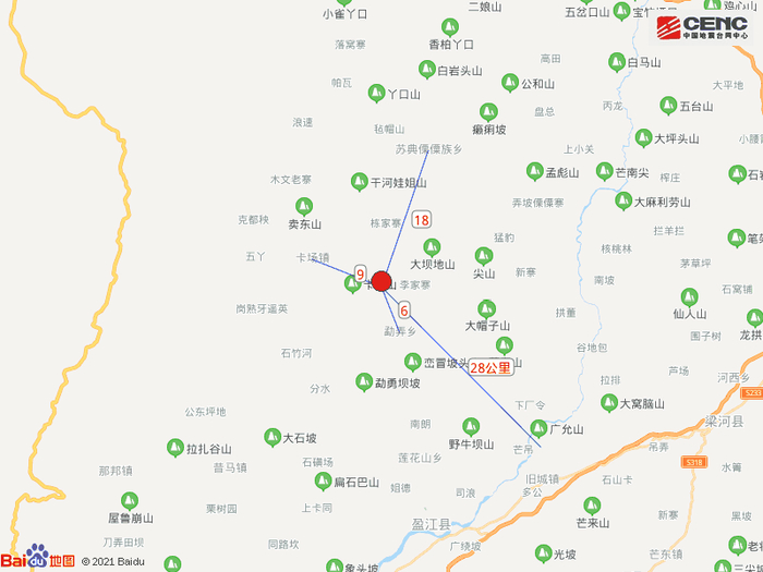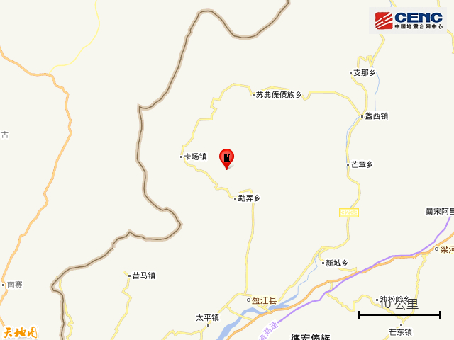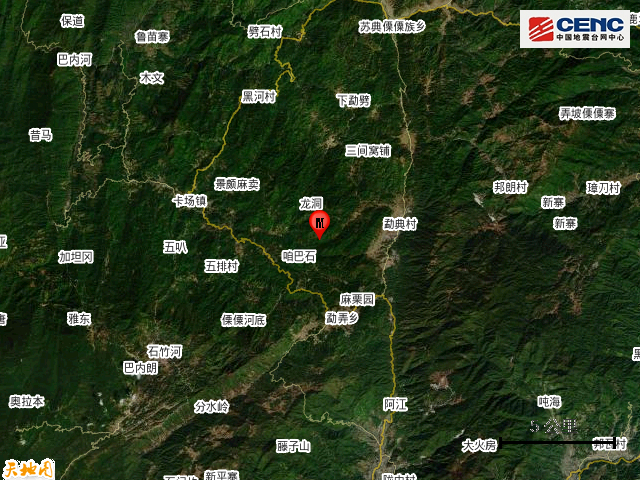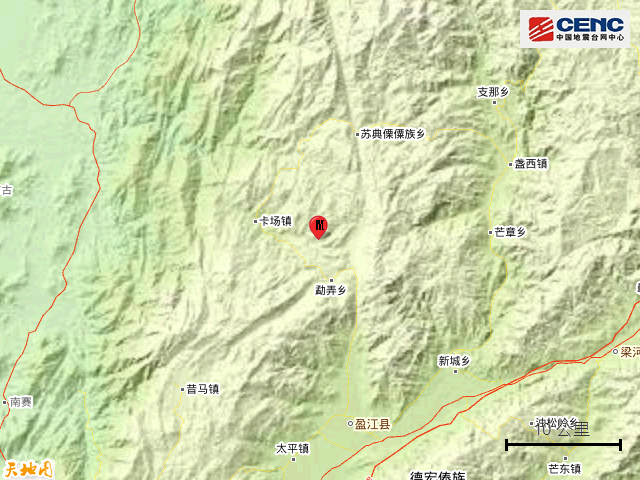 附近村镇:本次地震周边5公里内的村庄有咱巴石、麻竹岭岗、卡场村、基茨包、龙洞、新盘龙山、孙家寨、麻立坡、李家寨、新朗,20公里内的乡镇有勐弄乡、卡场镇、苏典傈僳族乡、新城乡。