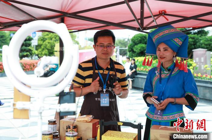 图为工作人员展示广西当地特色民族服饰。 王伟臣 摄