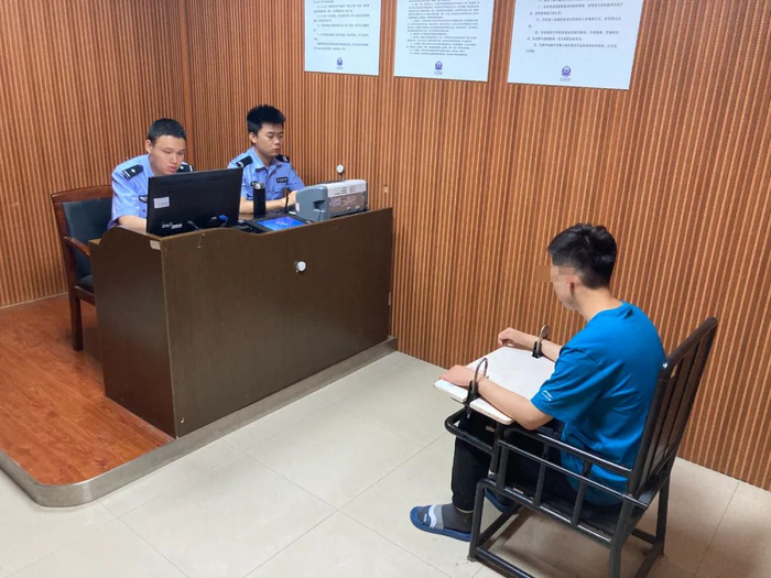 一番询问下,民警了解到,78岁的大爷与孙子专程从山东济宁来到临海,孙子因涉嫌网络诈骗,已向临海市公安局沿江派出所投案自首。