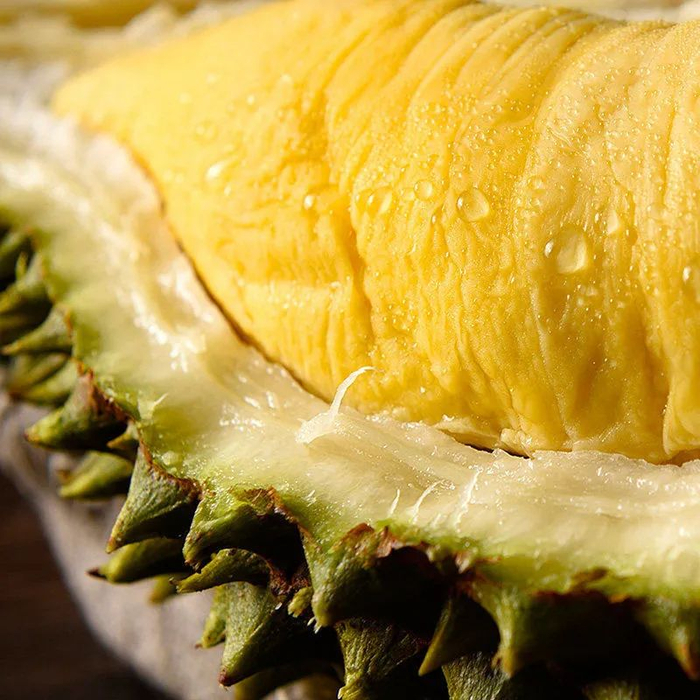 自然金黄的果肉,入口一丝微苦,而后回甘,浓郁的香气瞬间引爆味蕾,满满的乳酪感,浓郁喷鼻。肉厚绵密,风味浓郁,吃一口就让你“榴莲”忘返~