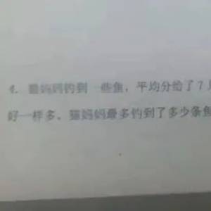 江汉区北湖小学数学老师冯钰娟分析,这个题目提到要将猫妈妈钓到的鱼平均分配给7只小猫,考查的是有余数的除法里余数要比除数小的概念。有7只小猫,除数就是7,平均分的鱼和剩下的鱼一样多,那余数只可能是1至6。题目又要求猫妈妈最多钓到多少条鱼,那取余数最大的6,所以答案是6×7+6=48。