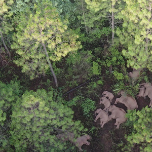 云南北迁亚洲象群(云南省森林消防总队提供)