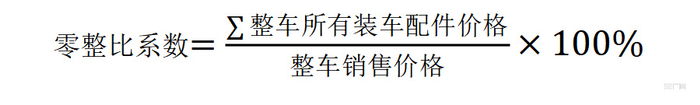 汽车零整比系数是车辆配件价格总和与整车销售价格的比值。其计算公式为: