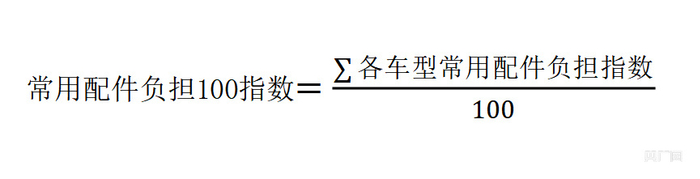 常用配件负担100指数是在常用配件负担指数研究的基础上,分别计算这100款车型的常用配件负担指数,得出的算术平均值。