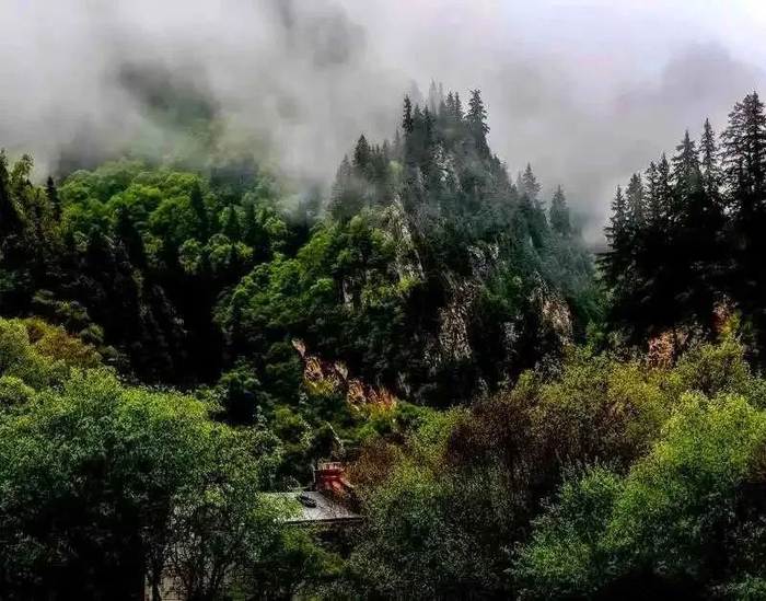 沟内峭壁纵横,树木葱郁