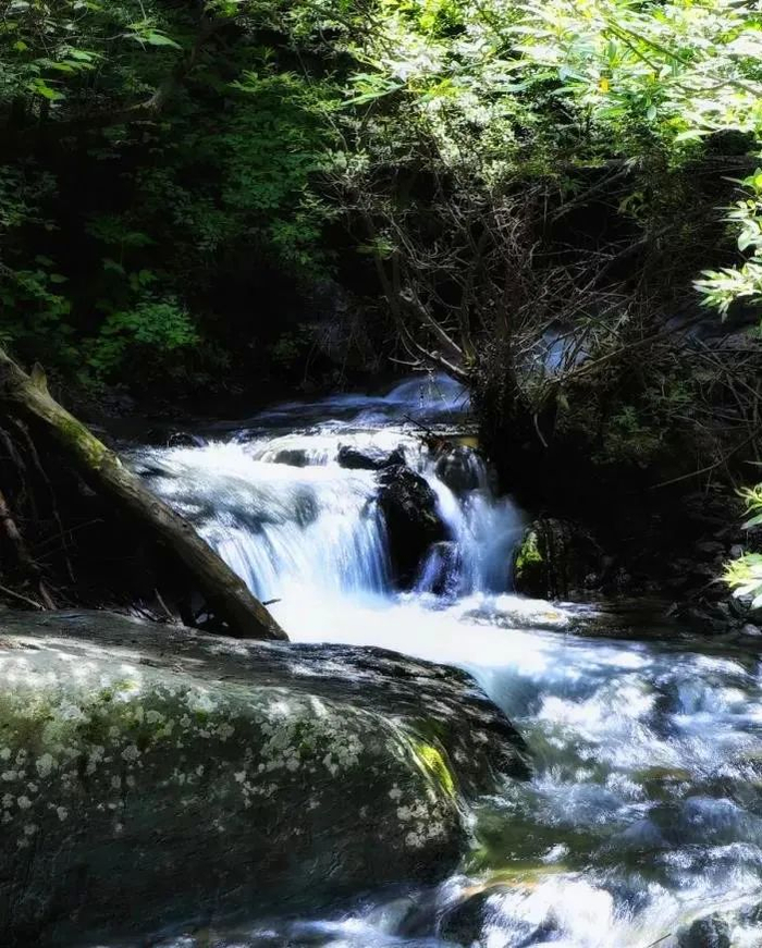 从峡谷中潺潺流出的山泉如丝如链