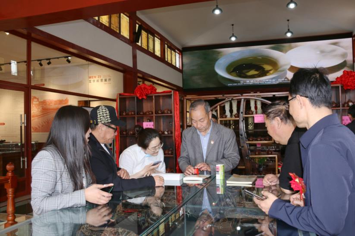 (游客在购买鸡鸣驿特色纪念封及明信片,打卡留念)