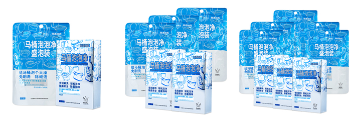 盛泡装的泡泡可以填满马桶,马桶上沿的出水口也能覆盖到,但不会溢出来,能够更彻底地清洁马桶。