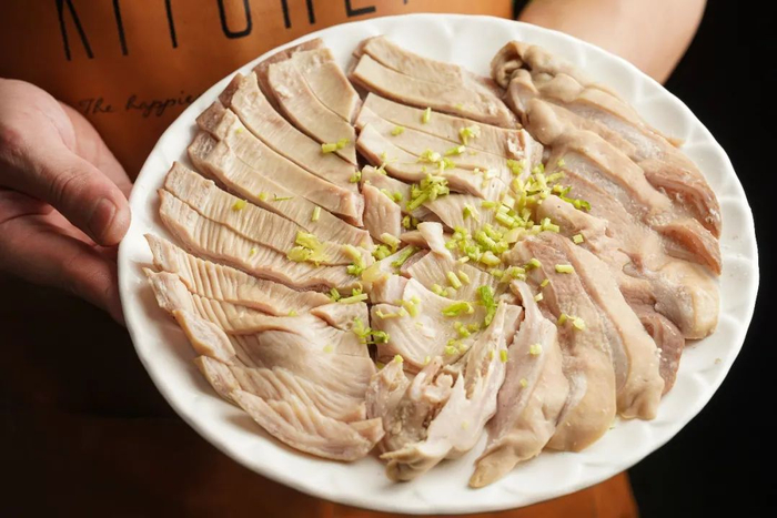吸足了鲜汤的鸡肉,再淋上一层酱汁,入口肉香汤香直击味蕾!鸡肉细腻嫩滑,每嚼一口都有汁biu出,过瘾!